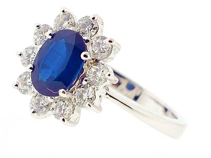 | Stone Weight : | 0.75 ct Rounds, 1.39 ct Oval Sapphire |